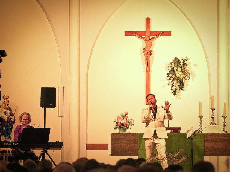 “In de Elvis-kerkdienst horen we het levensverhaal van Elvis met enkele van zijn grootste hits, en we horen en zingen samen veel Elvis-gospels: het is verder ook ‘gewoon’ een kerkdienst met toepasselijke Bijbellezing en gebed”, besluit Omvlee.